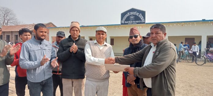 दोधारा । दोधारा चाँदनीका वडाध्यक्ष अध्यक्ष विक्रम चन्दले झण्डै रु. २ लाख बराबरको फर्निचर विद्यालयलाई सहयोग गरेका छन् । आईतवार दोधारा चाँदनी नगरपालिका– १ मा रहेको महाकाली आदर्श माध्यमिक विद्यालयलाई आफनो तलब भत्ता वाफतको आएको रकमले विद्यालयलाई आवश्यक रहेको बेन्च र डेस्क एक कार्यक्रमको आयोजना गरी हस्तान्तरण गरेका छन् । वि.सं २०२३ सालमा स्थापना भएको उक्त क्षेत्रकै जेष्ठ विद्यालयमा विद्यार्थीहरुका लागी बस्नलाई बेञ्च र डेस्कको अभाव रहेको हुदा आफुले विद्यालयमा अध्ययन गर्न आउने विद्यार्थीहरुलाई सहजताको लागी होस आफनो निजी भत्ता तलबबाट झण्डै रु. २ लाख बराबरको सहयोग गरेको दोधारा चाँदनी नगरपालिकाका वडा अध्यक्ष चन्दले बताए । चुनावी समममा आफुले गरेको घोषणा अनुरुप तलब भत्तालाई सामाजिक उत्तरदायित्व कार्यमा खर्च गर्ने प्रतिवद्धता अनुसार आफुले विद्यालयलाई सहयोग गरेको उनले बताए ।