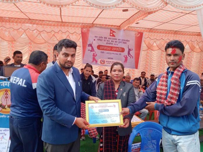 डडेल्धुरा: सुदूरपश्चिम प्रदेशको एक जिल्लामा राष्ट्रिय खेलाडी लाई एक कार्यक्रमका बीच सम्मान गरेको छ।