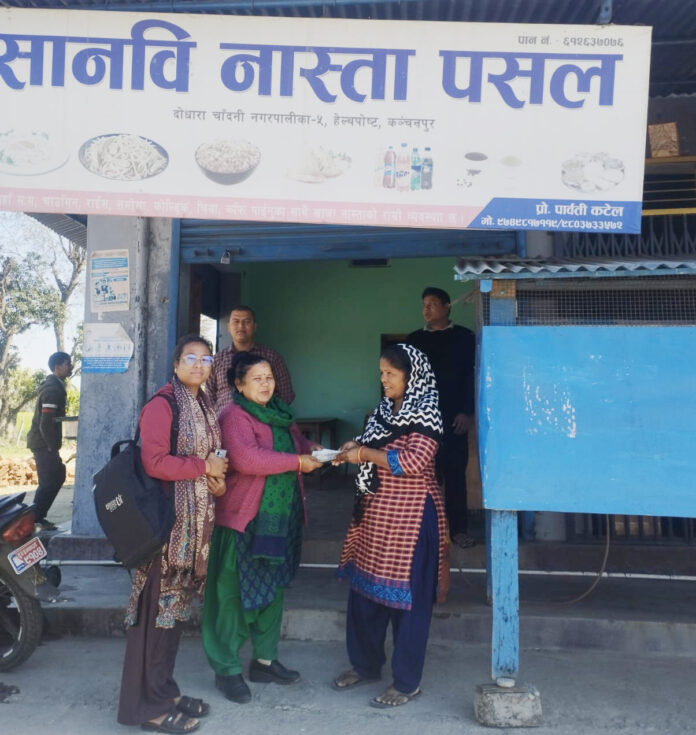दोधारा । दोधारा चाँदनीमा एकल महिलाहरुलाई आर्थिकपार्जनको निम्ती आर्थिक सहयोग गरिएको छ् । द्धन्द्धपिडित तथा एकल महिला बिकास केन्द्र कञ्चनपुरले दोधारा चाँदनी नगरपालिका– ५ निवासी पार्वती देवी कटेल र दोधारा चाँदनी नगरपालिका– ३ निवासी जशुदेबी बिष्टलाई आर्थिकपार्जनमा सहयोग होस भन्ने उद्धेश्यले आर्थिक सहयोग गरिएको द्धन्द्धपिडित तथा एकल महिला बिकास केन्द्र कञ्चनपुरका अध्यक्ष सिता बोहराले जनाएका छन् । दुर्व जना एकल महिलाहरु हुन् । पार्वती देवी कटेलले दोधारा चाँदनी नगरपालिका कार्यालय नजिक नास्ता पसल संचालन गर्दै आएका छन् ।