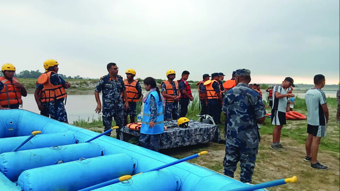 विपद् जोखिम उच्च रहेको कुतियाकवर क्षेत्रमा बाढीको कृत्रिम घटना नमुना अभ्यास