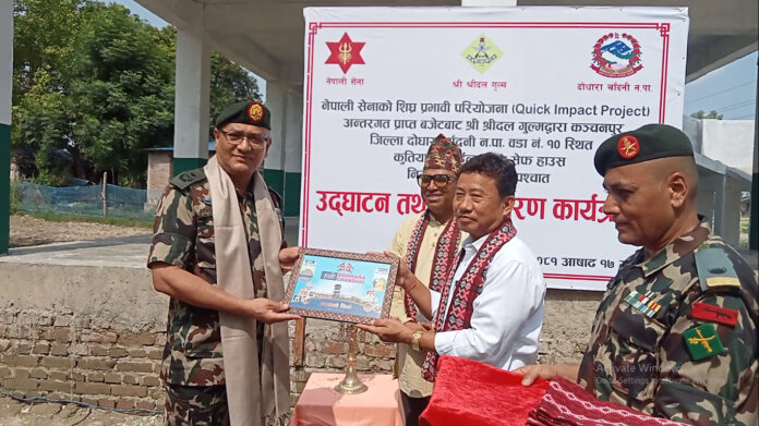 पप्पु गुरुङ्ग, दोधारा । नेपाली सेनाले कञ्चनपुरको दोधारा चाँदनी नगरपालिका–१० कुतियाकवर बस्तीमा निर्माण गरेको ‘सेफ हाउस’ उद्धघाटन संगै हस्तान्तरण गरेको छ् । श्रीदल गुल्म भगतपुर ब्यारेकले एक कार्यक्रमको आयोजना गरि दुई तले ‘सेफ हाउस’ उद्धघाटन संगै दोधारा चाँदनी नगरपालिकालाई सेनाले उक्त ‘सेफ हाउस’ हस्तान्तरण गरेको दोधारा चाँदनी नगरपालिकाका नगर प्रमुख किशोर कुमार लिम्बुले जानकारी दिनुभएको छ् । नेपाली सेनाको सिघ्र प्रभावकारी परियोजना अन्तर्गत प्राप्त बजेटबाट श्रीदल गुल्मद्धारा कञ्चनपुरले दोधारा चाँदनी नगरपालिका– १० कुतियाकवर बस्तीमा दुई तले ‘सेफ हाउस’ निमार्ण कार्य सम्पन्न गरेको हो । दोधारा चाँदनी नगरपालिका कार्यालयको रु. ५ लाख र नेपाली सेनाको रु. २० लाख गरि जम्मा रु. २५ लाखमा दुई तले ‘सेफ हाउस’ को निमार्ण सम्पन्न गरिएको हो ।