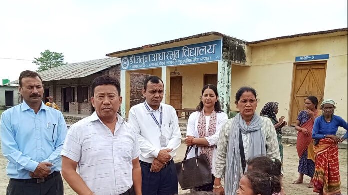 बाढीले विद्यार्थीको शैक्षिक सामग्री क्षती बनाएको अवस्था बुझ्न नगर प्रमुख लिम्बु नेतृत्वको टोली बिद्यालयमा