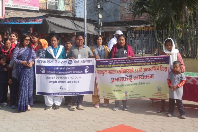 पप्पु गुरुङ्ग, दोधारा । आज ३३ औं अन्तर्राष्ट्रिय अपाङ्गता दिवस, भिमदत्तनगरमा पनि विविध कार्यक्रमको आयोजना गरि मनाइएको छ् । भीमदत्त नगरपालिकाको आयोजना तथा नेपाल राष्ट्रिय समाज कल्याण संघ (एनएनएसडब्ल्यूए), अपाङ्गता सेवा संघ, नेपाल नेत्रहीन संघ, सूदुरपश्चिम समावेशी अपाङ्गता संघ, नेपाल अपाङ्ग महिला संघ र शारीरिक अपाङ्गता खेलकुद प्रवद्र्धन समाज कञ्चनपुरको सह–आयोजनामा ‘समावेशी तथा दिगो भविष्यको पूर्वाधार, अपाङ्गता भएका व्यक्तिहरुको प्रवल नेतृत्व यसको आधार’ भन्ने मूल नारा सहित यस वर्षको अपाङ्गता दिवस मनाइएको हो । संयुक्त राष्ट्र संघले सन् १९८१ लाई अपाङ्गता वर्ष घोषणा गरि विश्वव्यापी रुपमा मनाउन आह्वान गरेपछि प्रत्येक वर्ष डिसेम्बर ३ मा विश्वभर अपाङ्गता दिवस मनाउन सुरु गरिएको हो ।