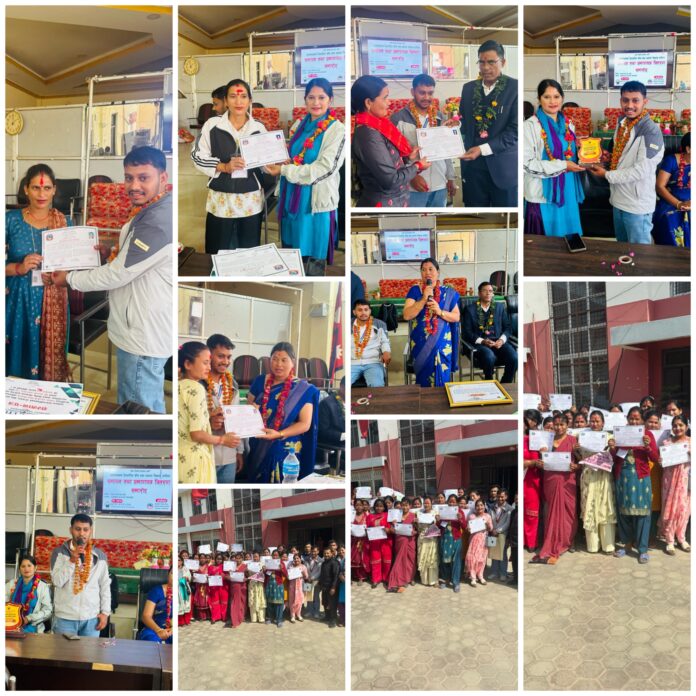 कञ्चनपुर : पुनर्वास नगरपालिकामा सूचीकृत बेरोजगार युवाहरूलाई लक्षित गरी सञ्चालन गरिएको ५० दिने डकर्मी तथा सडक मर्मत सम्भार तालिम सम्पन्न भएको छ। पुनर्वास रोजगार सेवा केन्द्रको आयोजनामा र बिसीटिसी महेन्द्रनगरको सहकार्यमा भएको उक्त तालिम आज सम्पन्न भएको हो।