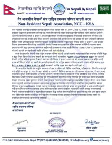 साउदी अरब : गैरआवासीय नेपाली संघ, राष्ट्रिय समन्वय परिषद् (एनआरएनए–एनसिसि) साउदी अरबले नवौं राष्ट्रिय अधिवेशन (२०२३–२५ कार्यकाल) पश्चात सामाजिक सेवामा उल्लेखनीय योगदान दिँदै आएको छ।