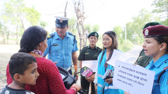पप्पु गुरुङ्ग, दोधारा । कञ्चनपुरको दोधारा चाँदनी नगरपालिकामा उत्थानशिल युवा सञ्जालले आम नागरिकलाई ट्राफिक नियम सम्वन्धी सचेतना मुलक अभियान संचालन गरेको छ् । दिन प्रतिदिन वढ्दै गईरहेको सडक दुर्घटना रोकथाम संगै न्युनिकरण गर्न दोधारा चाँदनी नगरपालिकाको मुल सडक खण्डमा सचेतना मुलक कार्यक्रम सञ्चालन गरिएको उत्थानशिल युवा सञ्जाल दोधारा चाँदनीका संयोजक दुर्गा बडुवालले जानकारी दिनुभएको छ् । उत्थाशिल युवा सञ्जालको आयोजना र ईलाका प्रहरी कार्यालय दोधारा चाँदनी, नगरप्रहरीको सहयोग र सहकार्यमा दोधारा चाँदनी नगरपालिकामा एक दिने आम नागरिकलाई ट्राफिक नियम सम्वन्धी सचेतना मुलक अभियान संचालन गरिएको उत्थानशिल युवा सञ्जाल दोधारा चाँदनीका संयोजक दुर्गा बडुवालले बतनाउनुभएको छ् ।