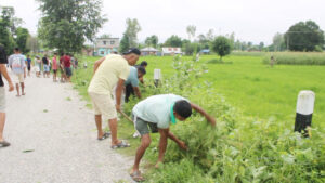 सडक दुर्घटना संगै वर्षायाममा लाग्ने विभिन्न खाले सरुवा रोग, बिशालु सर्प बच्न युवाहरुको सल्लाह अनुसार सडक सरसफाई अभियान सुरु गरिएको सरसफाई कार्यक्रममा अर्का युवा डम्मर रानाले बताउनुभएको छ् । युवाहरुले सडकमा रहेका झाडी सफा गर्ने, खाल्डाखुल्डी पुर्ने र नागरिकलाई सरसफाई बारे जागरुक गराउने काम गरिएको स्थानिय युवा डम्मर रानाले बताउनुभयो ।