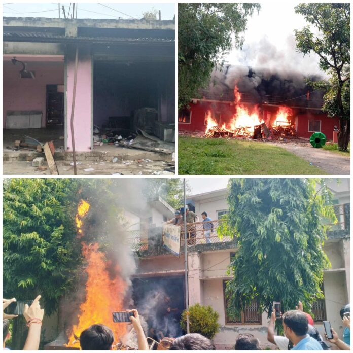 कञ्चनपुर : जेनजी आन्दोलनकारीले कञ्चनपुरमा तीन राजनीतिक दलका पाटी कार्यालयमा तोडफोड, आगजनी गरेर ध्वस्त पारिदिएका छन । सत्ताधारी काँग्रेस, एमाले नेतृत्वको सरकारले समाजिक सञ्जाल माथी रोक लगाएको र प्रमुख प्रतिपक्षीय दलले त्यसलाई संसदबाट प्रतिकार गर्न नसकेको आरोप लगाउँदै जेनजी आन्दोलन समुहले नेपाली काँग्रेस, नेकपा एमाले र नेकपा माओवादी पाटी कार्यालयमा आगजनी तोडफोड गरिदिएका हुन ।