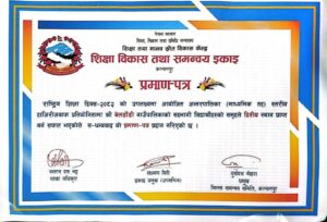असोज ५ गते शिक्षा विकास तथा समन्वय इकाई, कंचनपुरको आयोजनामा सञ्चालित जिल्ला स्तरीय माध्यमिक तहको हाजिरीजवाफ प्रतियोगितामा भीमदत्त नगरपालिकाले प्रथम र बेलडाँडी गाउँपालिकाले द्वितीय स्थान प्राप्त गरेको हो।