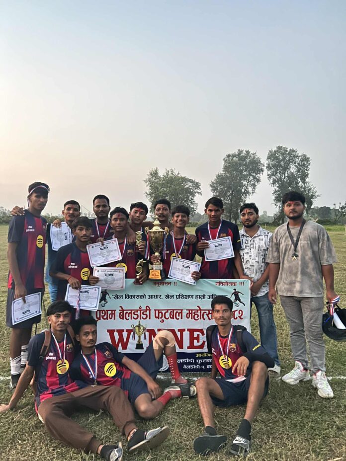 कञ्चनपुर: जिल्लाको दक्षिणी क्षेत्र बेल्डाँडी गाउँपालिकामा आयोजना भएको प्रथम स्थानिय स्तरको पुरुष फुटबल प्रतियोगिताको उपाधी ए वान स्टार सहाराले जितेको छ।