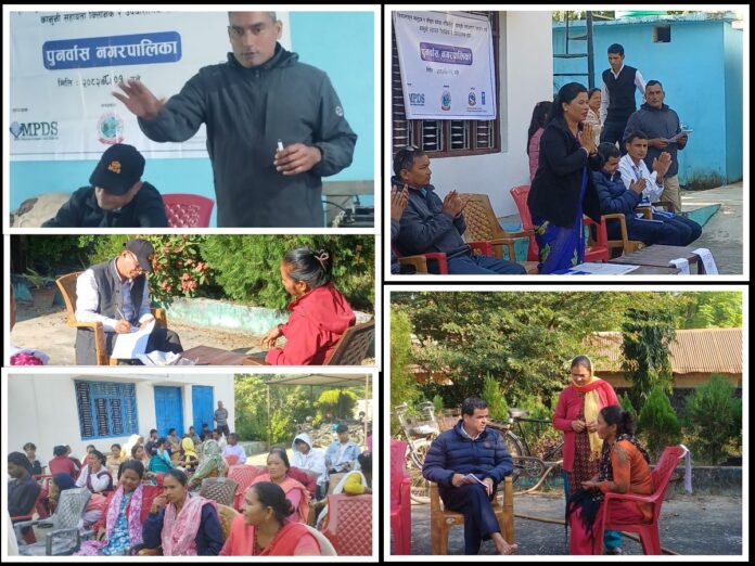 कञ्चनपुर : कञ्चनपुरको दक्षिणी भेग स्थित पुनर्वास नगरपालिकामा लक्षित समुदायका व्यक्तिको समस्या समाधान गर्न सरोकारवालासंग कानुन, न्याय तथा संसदीय मामिला मन्त्रालयसँगको समन्वय तथा युएनडिपिको आर्थिक सहयोगमा, बहुद्देश्यीय विकास समाज डडेल्धुराले पुनर्वास नगरपालिकामा कार्यान्वयन गर्दै आएको संस्थागत सुधार मार्फत न्यायमा पहुँच अभिवृद्धि परियोजना अन्तर्गत पुनर्वास नगरपालिका न्यायिक समिति संगको सहकार्यमा सञ्चालन हुदै आएको नगरपालिका स्तरीय ईग्जिट पोलिसी संवाद कार्यक्रम सम्पन्न भएको छ। पुनर्वास नगरपालिका वडा नं. ६ को सभाहलमा वडा नं. ६ का वडाध्यक्ष मित्र सिह लामा को अध्यक्षतामा भएको सो अन्तरक्रिया कार्यक्रममा प्रमुख अथिति न्यायिक समिति संयोजक एवं नगर उप प्रमुख भुुलिया कुमारी राना रहेका थिए ।
