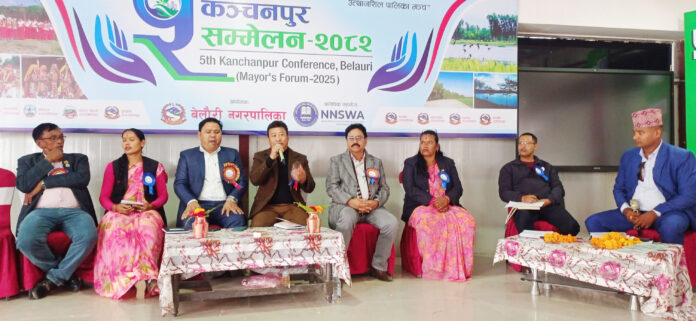 महेन्द्रनगर – पाचौ कञ्चनपुर सम्मेलन सम्पन्न भएको छ । शुक्रबार बेलौरी नगरपालिकाको आयोजना एव एनएनएसडब्लुएको प्राविधिक सहयोगमा “सुरक्षित र दिगो विकासका लागि उत्थानशील पालिका मञ्च” भन्ने नाराका साथ सुरु भएको पाँचौँ कञ्चनपुर सम्मेलन सम्पन्न भएको हो । बेलौरीमा सम्पन्न उक्त सम्मेलनले जलवायु परिवर्तन अनुकूलन तथा विपद् जोखिम न्यूनीकरण र व्यवस्थापनको पक्षमा १० बुँदे ‘बेलौरी घोषणापत्र’ जारी गरेको छ । दीगो विपद् व्यवस्थापन, जोखिम न्यूनिकरण र स्थानीय सरकारको सक्रिय भूमिका सुनिश्चित गर्नउक्त सम्मेलन आयोजना गरीएको छ । उक्त सम्मेलनमा जिल्लाका नौवटै स्थानीय तहका प्रमुख उपप्रमुख सरकारी तथा गैरसरकारी संघ–संस्था, सुरक्षाकर्मी, सञ्चारकर्मी, विज्ञ एवम् सरोकारवालाको सहभागिता रहेको थियो। सम्मेलनले आगामी दिनमा जिल्लामा हुने कुनै पनि प्राकृतिक वा मानवसृजित विपद् जोखिमको सामना गर्न तयारी, योजना र समन्वयलाई प्राथमिकतामा राख्ने प्रतिबद्धता जाहेर गरेको छ। यसअघि भीमदत्त, पुनर्वास, दोधाराचाँदनी र लालझाडीमा आयोजित चार संस्करणका सम्मेलनमा हासिल अनुभव र निष्कर्षलाई आगामी रणनीति निर्माणमा प्रयोग गर्न पाँचौँ सम्मेलन बेलौरीमा आयोजना गरिएको हो । बेलौरी नगरपालिकाका मेयर पोतीलाल चौधरीले सम्मेलनलाई ऐतिहासिक तथा जिल्लाका सबै पालिकाबीचको साझा प्रयासको रूपमा वर्णन गर्दै भने, कञ्चनपुर जिल्लामा बाढी, कटानी, डुबान र बन्यजन्तुको जोखिम लगातार बढ्दो अवस्थामा रहेको बताए ।