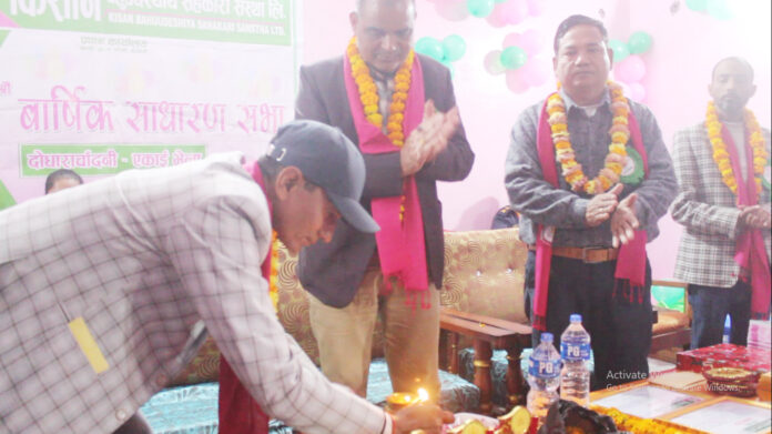 पप्पु गुरुङ्ग, दोधारा । लम्कीचुहा–१, लम्की बजारमा केन्द्रीय कार्यालय रहेको किसान बहुउद्देश्यीय सहकारी संस्था दोधारा चाँदनी शाखाले आफ्नो ३१ औं वार्षिक साधारण सभा तथा ईकाइ भेला सम्पन्न गरेको छ् । कञ्चनपुरको दोधारा चाँदनी नगरपालिका– २ वडा कार्यालयको सभा कक्षमा किसान बहुउद्देश्यीय सहकारी संस्था दोधारा चाँदनी शाखाले आफ्नो ३१ औं वार्षिक साधारण भब्यताको साथ सम्पन्न गरेको किसान बहुउद्देश्यीय सहकारी संस्था दोधारा चाँदनी शाखाका शाखा प्रमुख लोकेन्द्र गौतमले जानकारी दिनुभएको छ् । शाखा प्रमुख लोकेन्द्र गौतमले ३० औं वर्ष सम्मको यात्रामा साथ, समर्थन र शुभेच्छा राख्नुहुने सम्पूर्ण प्रति कृतज्ञता व्यक्त गर्दै आगामी दिनमा पनि निरन्तर समर्थन र शुभेच्छाको अपेक्षा प्रकट गर्नुभएको छ् । दोधारा चाँदनी नगरपालिका क्षेत्रमा शाखा कार्यालय स्थापना गरि ८० वटा समुह, १७ सय शेयर सदस्य मार्फत आधुनिक वित्तीय सुविधा सहितको बचत तथा ऋण सेवा, शिक्षा, कृषि उत्पादन, सिपमुलक कार्यक्रम सञ्चालन गर्दै आएको उहाँले बताउनुभएको छ् ।