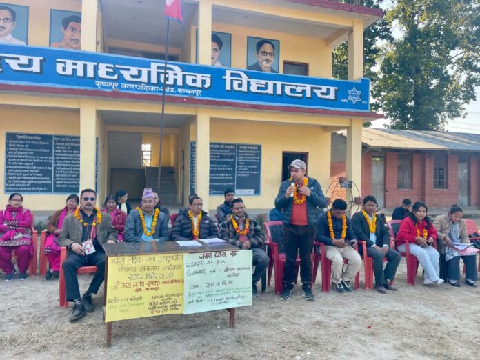 कञ्चनपुर : कञ्चनपुरको कृष्णपुर नगरपालिका २वाणीबंकको उदय माध्यामिक विद्यालयमा आपाङ्गमैत्री शौचालय निर्माण भएको छ । उक्त उदय माध्यामिक सामुदायिक विद्यालयमा आधुनिक आपाङ्गमैत्री शौचालय निर्माण भएको हो । बिहीबार एक कार्यक्रमका विच कृष्णपुर नगरपालिका २का वडाध्यक्ष अर्जुन बहादुर साउदले उद्घाटन गर्दै अपाङ्गता भएका विद्यार्थीलाई सहज हुने बताए ।