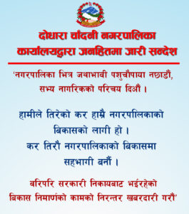 दोधारा चाँदनी नगरपालिका कार्यालयले समेत लागु औषध दुव्र्यसनीलाई निरुत्साहित गर्न तथा युवाहरुलाई खेलमा रुची बढाउन वर्षेनी ठुला लगानी गर्दै आएको उहाँले बताउनुभयो ।
