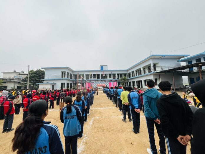 कञ्चनपुर : रेडियन्ट माध्यमिक विद्यालयमा सोमबारदेखि खेलकुद सप्ताह सुरु भएको छ। खेलकुद सप्ताहको उद्घाटन विद्यालयका प्रधानाध्यापक सूर्यबहादुर चन्द र उपप्रधानाध्यापक उषा विष्टले संयुक्त रूपमा पानसमा बत्ती बालेर गर्नु भएको हो । खेलकुद सप्ताह अन्तर्गत नर्सरीदेखि कक्षा १० सम्मका सबै विद्यार्थीहरू सहभागी हुने विद्यालयले जनाएको छ। नर्सरी, एलकेजी, कक्षा १, २ र ३ का विद्यार्थीहरूका लागि बेलुन ब्लास्ट, हट पोटाटो, ५० मिटर दौड, म्युजिकल चेयरलगायतका खेलकुद कार्यक्रमहरू आयोजना गरिएको छ। ती खेलहरू सञ्चालनको जिम्मेवारी जानकी पन्त, उषा विष्ट, ममता भारती र शारदा म्यामलाई दिइएको छ।