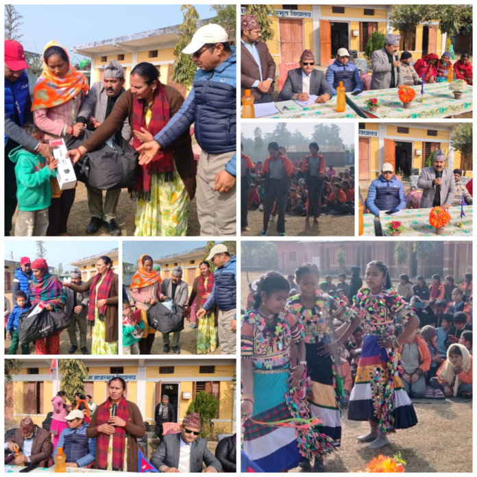 झलारी : कञ्चनपुरको शुक्लाफाँटा नगरपालिका–११ स्थित सिद्धभीम आधारभूत विद्यालयमा अध्ययनरत ७४ जना विद्यार्थीलाई बिहीबार न्यानो लुगा वितरण गरिएको छ । राष्ट्रिय विपद् जोखिम न्यूनीकरण कार्यालयको सिफारिसमा सेभ द चिल्ड्रेन सुर्खेतले विद्यालयमा कक्षा १ देखि ५ सम्म अध्ययनरत बालबालिकालाई जाडोबाट बच्न न्यानो लुगा थर्मस लगायतका सामग्री उपलब्ध गराएको हो । विद्यालय व्यवस्थापन समितिका अध्यक्ष शिवराज भट्टको अध्यक्षतामा सम्पन्न कार्यक्रममा शुक्लाफाँटा नगरपालिकाका उपप्रमुख कल्पना पन्तले विद्यार्थीलाई सामग्री हस्तान्तरण गर्नुभयो ।