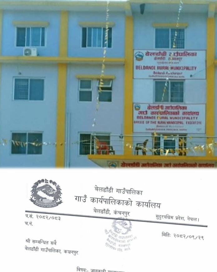 महेन्द्रनगर- कञ्चनपुर जिल्लाको दक्षिणी क्षेत्रमा रहेको बेल्डाँडी गाउँपालिकाले स्वीकृत दरबन्दी बाहेकका कर्मचारीको नवीकरण नगर्ने जनाएको छ।