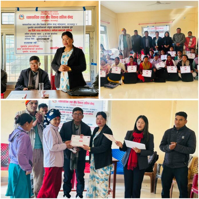 पुनर्वास : कञ्चनपुरको महेन्द्रनगरस्थित सिप विकास तालिम केन्द्र र पुनर्वास नगरपालिकाको संयुक्त आयोजनामा सञ्चालन भएको **४५ दिने झोला बनाउने सिप विकास तालिम** आज एक औपचारिक समारोहका बीच सम्पन्न भएको छ।
