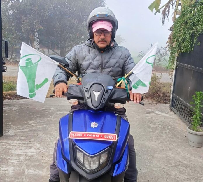 सेवानिवृत पूर्वकृषि अधिकृत भट्ट स्कुटर चढेर चुनावी प्रचारमा