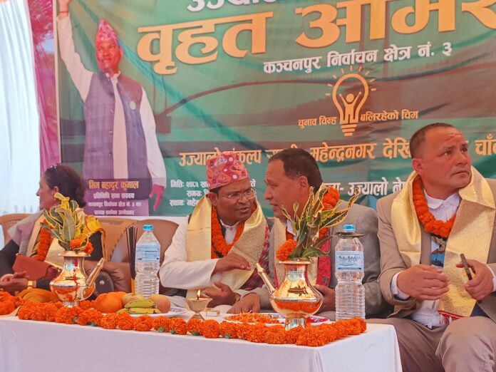 कञ्चनपुर: उज्यालो पाटी नेपालले कञ्चनपुरमा चुनावी सभा गरेको छ । जिल्लाको क्षेत्र १ पनुर्वास र क्षेत्र ३ महेन्द्रनगरमा चुनावी सभा गरेको हो । शुक्रबार पुनर्वास र शनिबार महेन्द्रनगरमा चुनावी सभा गरिएको उक्त पाटीले जनाएको छ ।