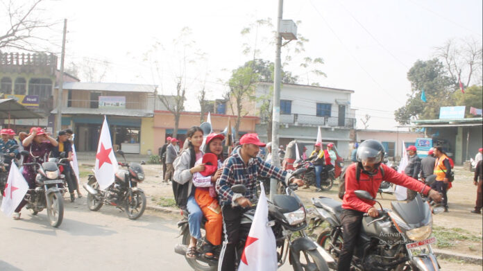 दोधारा । आसन्न प्रतिनिधी सभालाई लक्षित गर्दै कञ्चनपुरको दोधारा चाँदनी नगरपालिकामा नेपाली कम्युनिष्ट पाटी (नेकपा) ले बृहत मोटरसाईकल र्याली तथा घरदैलो कार्यक्रमलाई तिब्रता दिएको छ् । दोधारा चाँदनी नगरपालिकाको समस्त दशै वटा वडामा टोल, बस्ती स्तर मोटरसाईकल र्याली तथा घरदैलो कार्यक्रमलाई तिब्रता दिएको नेपाली कम्युनिष्ट पाटी (नेकपा) नेता ईन्द्र बहादुर रावतले जानकारी दिनुभएको छ् । दोधारा चाँदनीमा मतदाता संग भेट गरि नेपाली कम्युनिष्ट पाटी (नेकपा) का तर्फबाट कञ्चनपुर क्षेत्र नं. ३ प्रतिनिधी सभाका उम्मेदवार मान बहादुर सुनारलाई बिजय गराउन मतदाता संग भेट तथा मतदाता शिक्षा कार्यक्रम समेत अघि बढाएको नेपाली कम्युनिष्ट पाटी (नेकपा) का नेता ईन्द्र बहादुर रावतले बताउनुभएको छ् ।