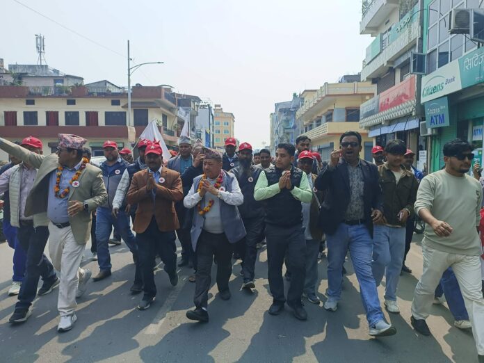 कञ्चनपुर : नेपाल कम्युनिष्ट पाटी(नेकपा)ले कञ्चनपुर ३मा दमाकेदार ¥याली निकालेको छ । शुक्रबार महेन्द्रनगर बजारमा नेकपाले महेन्द्रनगर बजारमा ¥याली निकालेको हो । नेकपा कञ्चनपुरका युवा नेता बिरेन्द्रराज विष्टले उम्मेदवार मान बहादुर सुनार सहित क्षेत्रका नेता कार्यकर्ता, शुभचिन्तकहरुको उपस्थितिमा ¥याली निकालिएको बताए ।