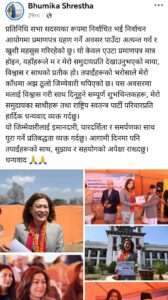 यस अवसरमा श्रेष्ठले आफूलाई विश्वास गरी साथ दिनुहुने सम्पूर्ण शुभचिन्तकहरू, समुदायका साथीहरू तथा रास्वपा परिवारप्रति हार्दिक धन्यवाद व्यक्त गर्नुभयो। विशेषगरी यौनिक तथा लैङ्गिक अल्पसंख्यक समुदायको प्रतिनिधित्व गर्ने अवसर पाएकोमा उहाँले गौरव व्यक्त गर्नुभयो।