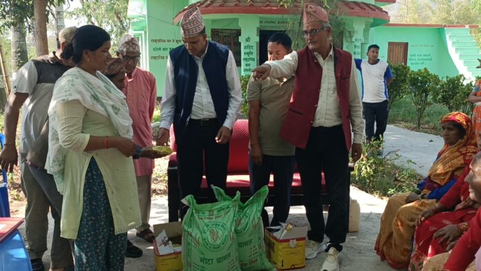 सामुदायिक वन उपभोक्ता समितिको तर्फबाट स्थानिय सदस्यहरुले पाउदै आएको राहत वितरण कार्यक्रममा जिल्ला वन अधिकृत लक्ष्मी प्रशाद जोशीको प्रमुख आतिथ्यमा उपभोक्ता समुहका अध्यक्ष कर्ण बहादुर बिष्ट, भीनपा–३ वडा सदस्य विर वहादुर महता लगायतको उपस्थिति रहेको थियो ।