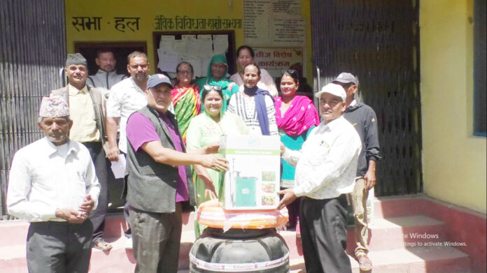 कञ्चनपुर । कञ्चनपुरको दोधारा चाँदनी नगरपालिकामा किसानहरुलाई कृषी औजार बितरण गरिएको छ् । कञ्चनपुरको दोधारा चाँदनी नगरपालिकामा रहेको हिमालय मध्यवर्ती उपभोक्ता समितिद्धारा किसानहरुलाई कृषी औजार बितरण गरिएको छ् । जोलोजिकल सोसाईटी अफ लण्डनको सहयोग र राष्ट्रिय प्रकृती संरक्षण कोषको सहकार्य र हिमालय मध्यवर्ती उपभोक्ता समितिको आयोजनामा संगम कृषी तथा बाख्रा पालन समुहका सदस्यहरुलाई २ सय लिटरको पानी ट्यांकी, पाईप, औषधी छर्ने ट्यांकी, टनेल लगाएत कृषी उपजका सामग्री बितरण गरिएको हिमालय मध्यवर्ती उपभोक्ती समिति दोधारा चाँदनीका अध्यक्ष पदम बहादुर सिंहले बताउनुभएको छ् ।