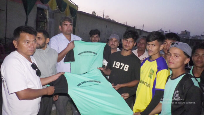 मेयर कप फुटवल प्रतियोगितालाई सघाउन खेलाडी संगै आयोजक संस्थालाई पोशाक हस्तान्तरण गरिएको निजी बिद्यालय क्षेत्रिय समिति दोधारा चाँदनीका अध्यक्ष अर्जुन सिंह कुँवरले बताउनुभएको छ् । लागु औषध दुव्र्यसनीलाई निरुत्साहित गर्न तथा युवाहरुलाई खेलमा रुची बढाउन गरिएको कार्यक्रमलाई एक्कबद्धता जनाउदै पोशाक सहयोग गरिएको उहाँले बताउनुभयो ।