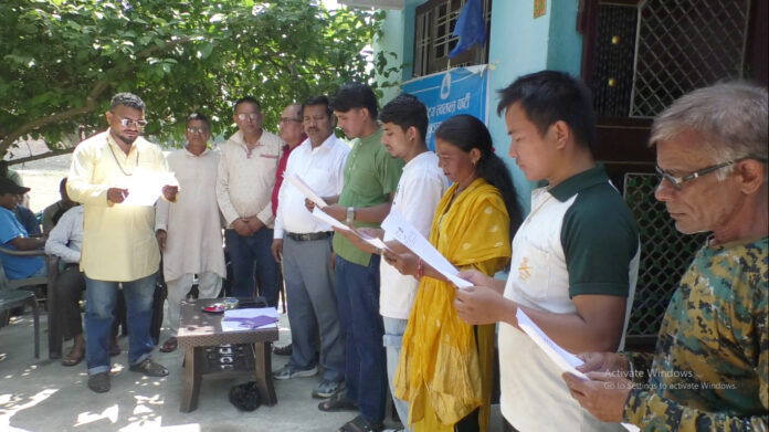 कार्यक्रममा नव निर्वाचित रास्वपाका वडा कमिटिलाई अबिर लगाएर स्वागत गरिएको थियो ।